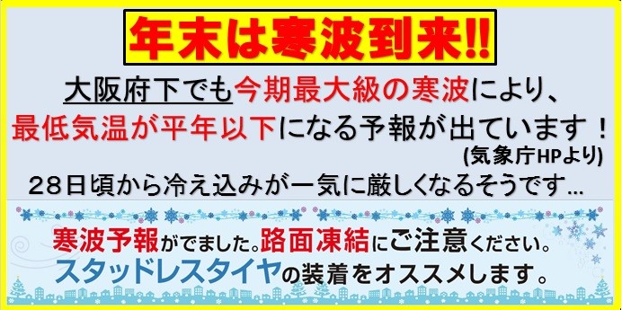 年末にかけて大阪府下も気温が下がる見込みです スタッフ日記 タイヤ館 松原 大阪府 和歌山県のタイヤからはじまる トータルカーメンテナンス タイヤ館グループ
